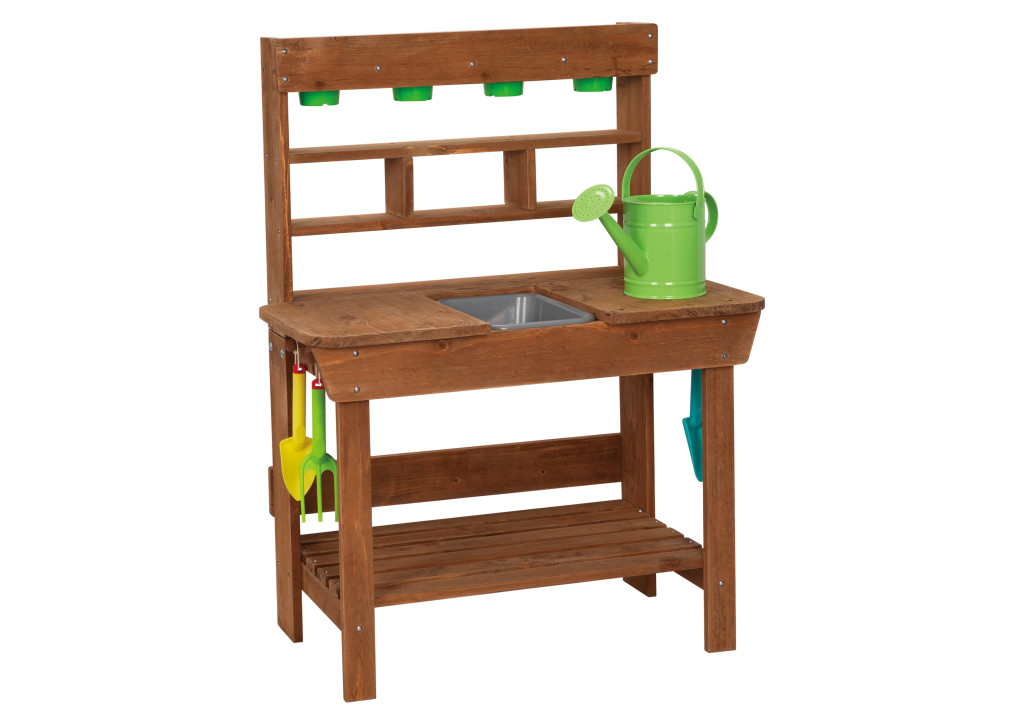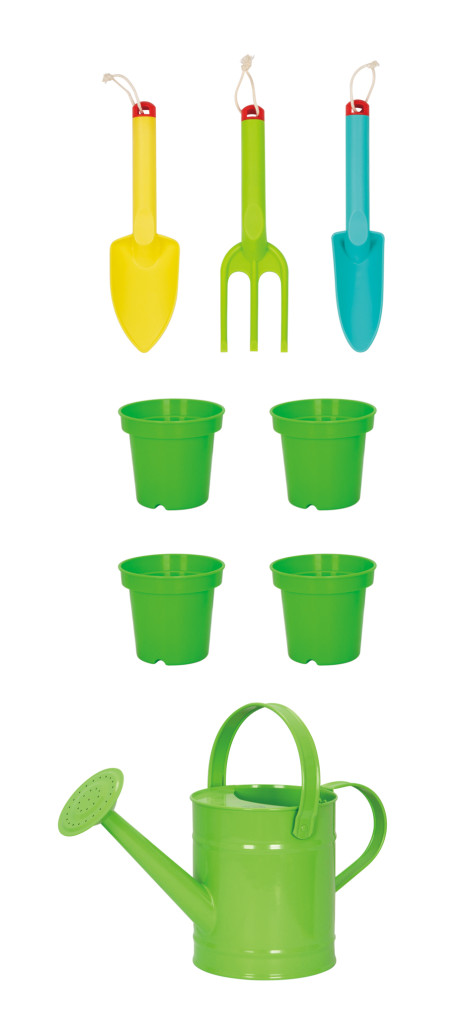 Copiii pot experimenta în propria lor „mini bucătărie”, pot planta flori, crea opere din nisip și apă și se pot bucura de ore întregi de joacă în aer liber. Setul include o chiuvetă, patru ghivece verzi pentru flori, o stropitoare, precum și unelte practice de grădinărit (lopățică, greblă, săpăligă) care transformă joaca într-o adevărată aventură.