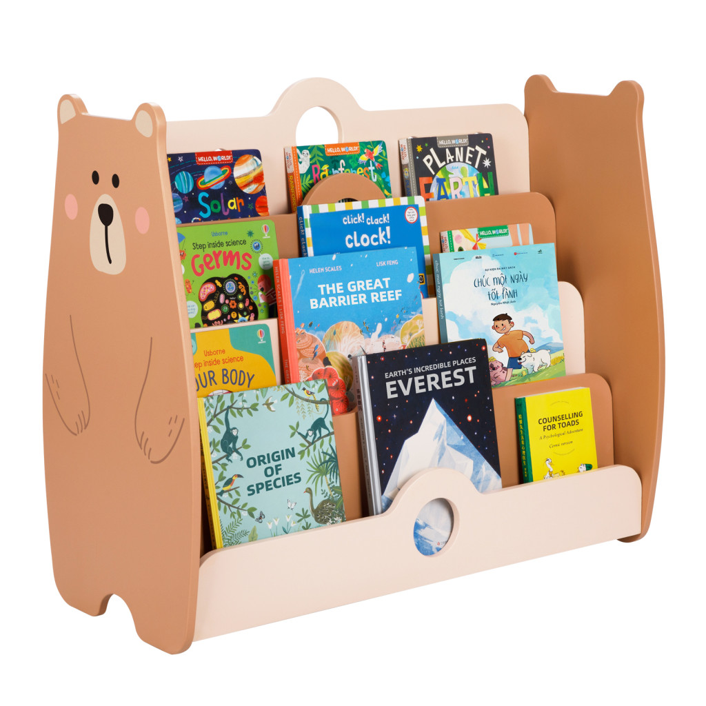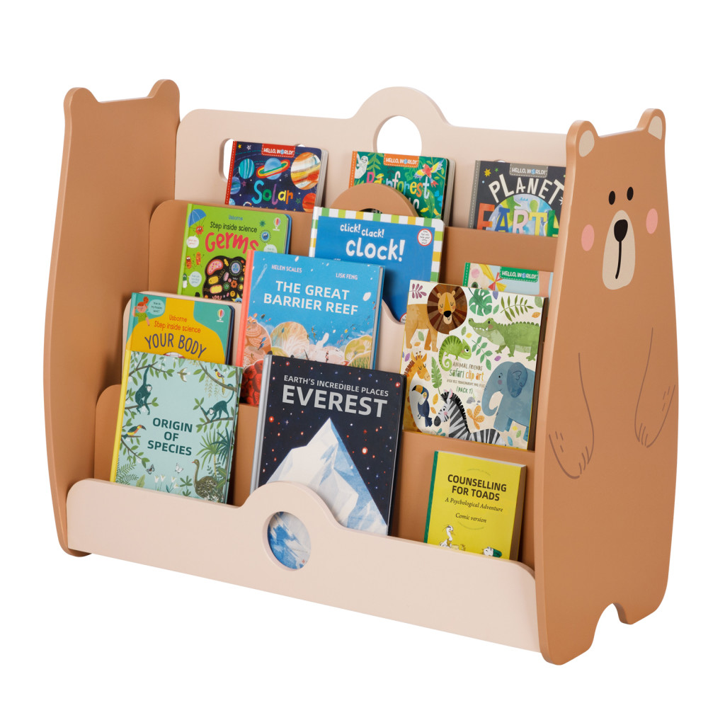 Raft de cărți pentru copii cu model ursuleț – bibliotecă deschisă pe 4 niveluri