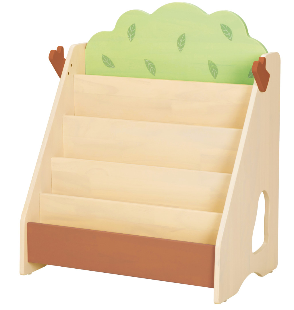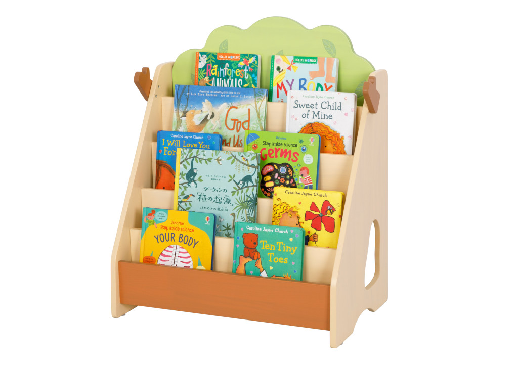 Designul deschis permite copiilor să vadă cu ușurință coperțile cărților, făcând alegerea mai simplă și mai plăcută. Datorită înălțimii prietenoase pentru copii, aceștia pot lua și aranja singuri poveștile și cărțile ilustrate preferate. Mânerele laterale decupate fac mutarea raftului rapidă și comodă – dintr-o cameră în alta.