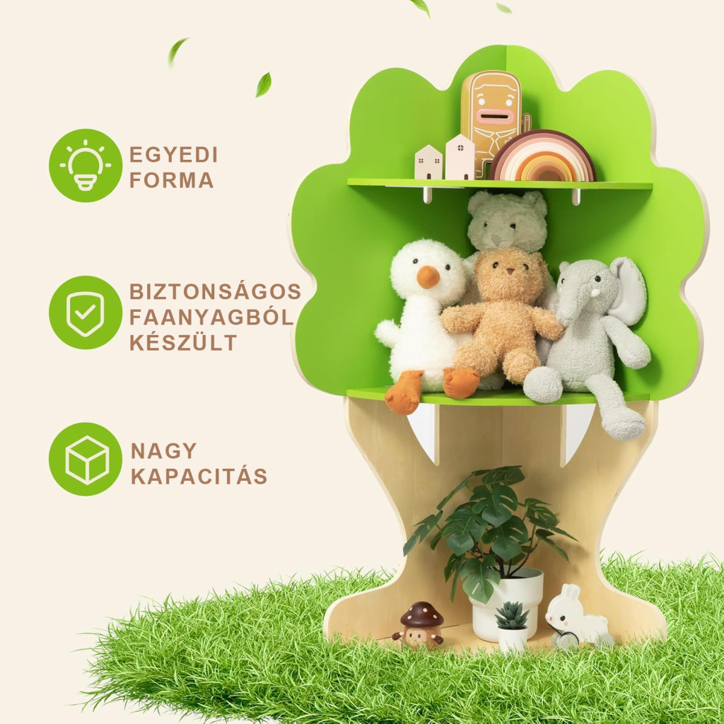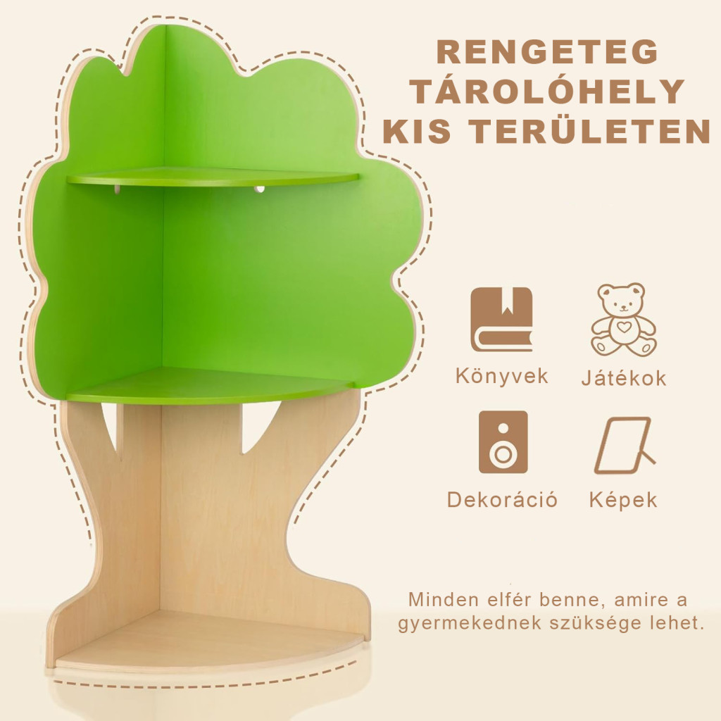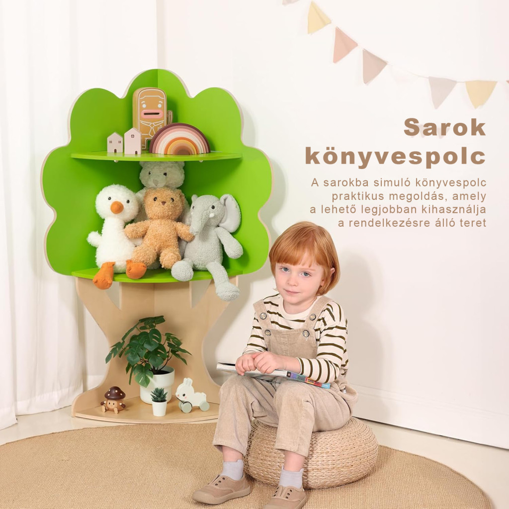 Cele două polițe de colț oferă spațiu generos pentru cărți de povești preferate, plante sau mici obiecte decorative, în timp ce partea inferioară este ideală pentru depozitarea plușurilor sau coșurilor.
