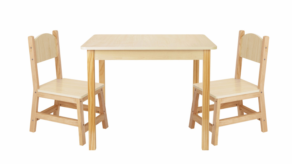 OOOK Masă din lemn de pin pentru copii cu 2 scaune